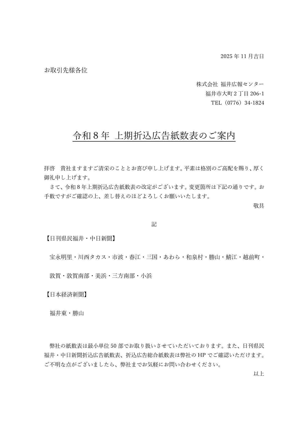 2025.11.14令和8年上期折込広告紙数表のご案内
